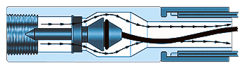 - Fluid / gas going through the hose assembly.